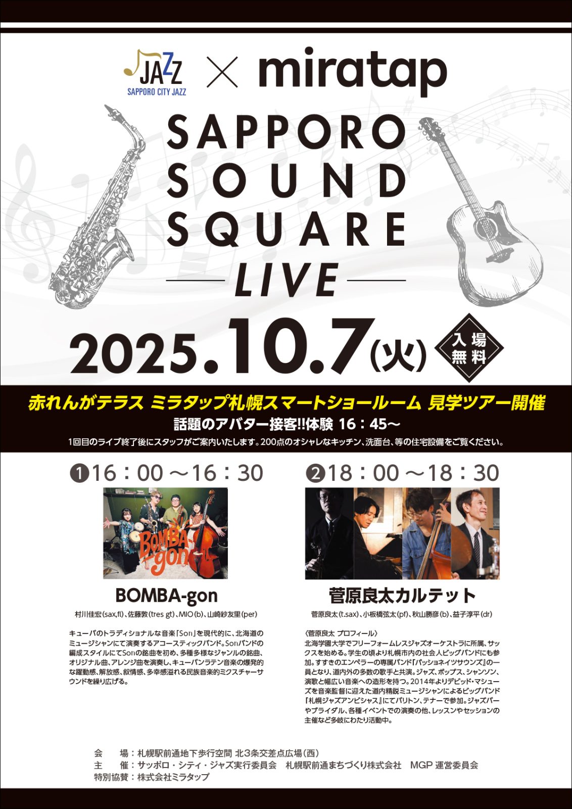 来週10月7日(火)は、 16:00から「BOMBA-gon」、18:00からは 「菅原良太カルテット」のライブをお届けします!
