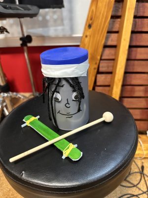 たたくとポンポン楽しい音が出る風船ヘッドドラムと、簡単に音が出せるヘラカズーを作ります♪